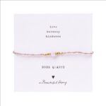 Deze armband van A Beautiful Story is gemaakt van katoendraad, glaskralen en messingkralen met een rozen quartz edelsteen. Deze steen staat voor liefde, harmonie en vriendelijkheid. De armband heeft een schuifslot van katoendraad. De armband is goed te combineren met andere armbanden.